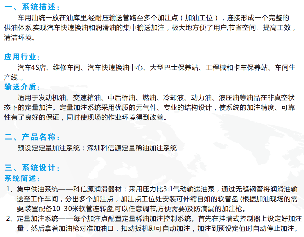 集中供油系統(tǒng)、定量加注系統(tǒng)
