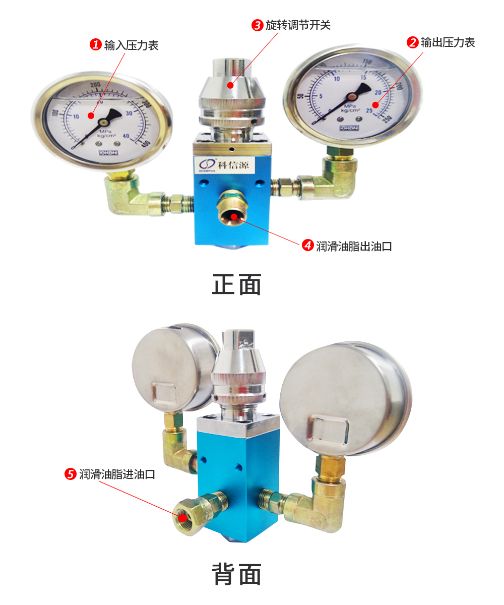 2. 壓力表正面為潤(rùn)滑油脂出油口,背面為潤(rùn)滑油脂進(jìn)油口。